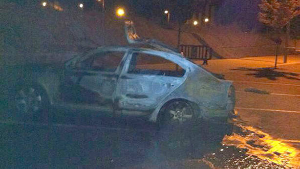 Un guardia civil simula un atentado en Pamplona tras incendiarse su coche